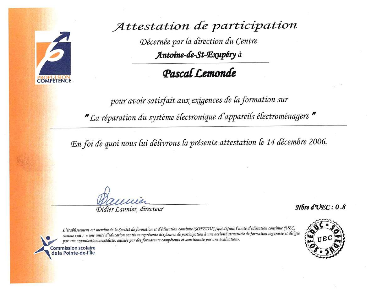 We repair electric and electronic household appliances as well as refrigeration equipment in Saint-Hyacinthe.